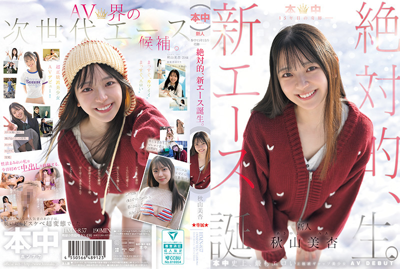 メーカー創立15周年。本中15年目の奇跡。絶対的、新エース。誕生―秋山美杏、20歳。看護学生。奈良県出身。性格もビジュアルも、ザ・正統派。性格は、明るい変態。明るく、可愛く、たまに、無邪気な彼女の素敵なギャップ。とあるAV女優に憧れて、この世界にやってきた。アダルトの世界とは無縁そうな、真面目で、クラスの人気者のあの子。実はエッチな女の子。本当は超ドスケベ変態なんです。本中史上No,1。最もエロい正統派ギャップ美少女 AVデビュー。まっすぐエロくて、まっすぐカワイイ。いつも笑顔で超明るい!そして、セックスも超エッチ。自ら腰振る騎乗位がギャップ凄すぎて…超驚愕!!AV界の次世代エース候補。この笑顔にこのセックスに秋山美杏ちゃんに出会えて本当に良かった。きっとあなたもそう思う。早く、美杏ちゃんでシコりたい。